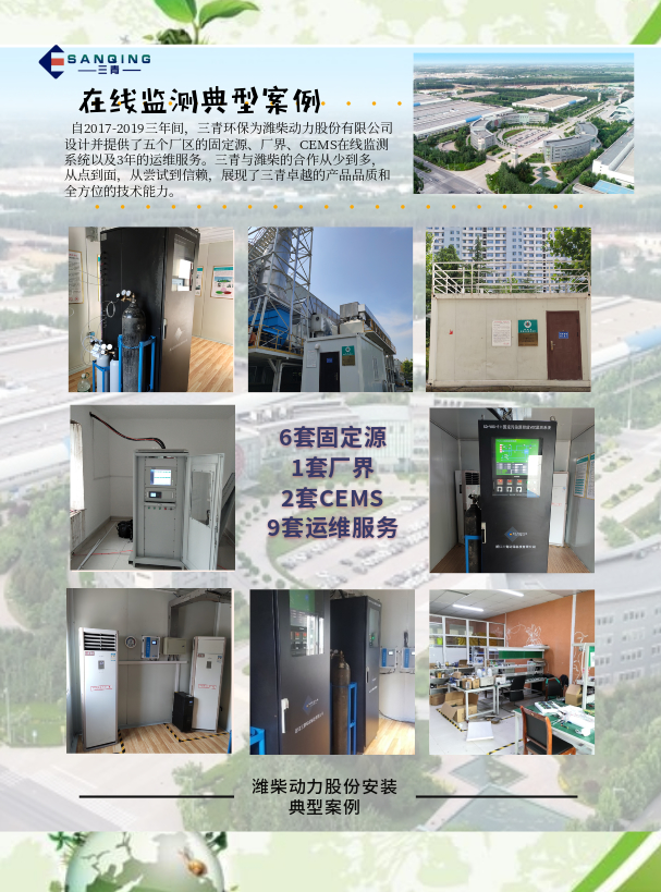 2017-2019三年間,三青環(huán)保為濰柴動力股份有限公司設(shè)計并提供了5個廠區(qū)的6套固定源、1套廠界、2套CMES以及3年運維服務(wù)。